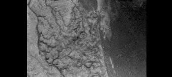Rivierbeddingen op Titan - Er lijkt vloeibaar spul op Titan te zijn, ook al is het er 200C onder nul. De donkere strepen doen denken aan een rivierdelta.